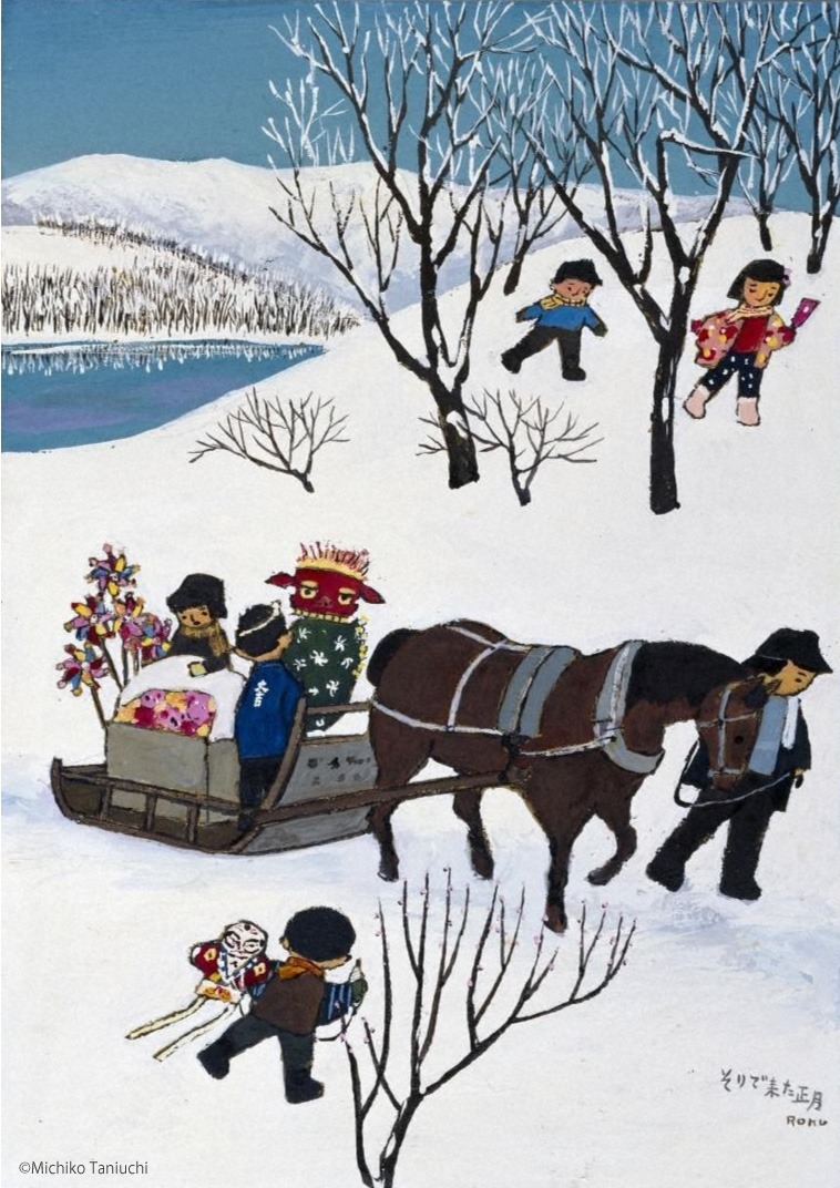 当館の《そりで来た正月》はもちろん、他にも魅力的な作品がエントリーしています。午にまつわる色々な作品を楽しむことができますので、ぜひご覧いただき、谷内作品の応援をよろしくお願いいたします。