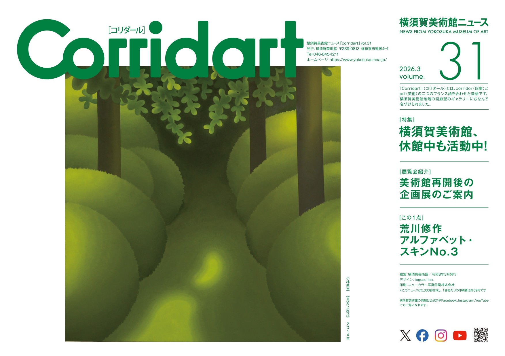 横須賀美術館では、多彩な視点での展覧会情報や、美術館で行っているさまざまな活動をご紹介する美術館ニュースCorridart (コリダール)を年2回発行しています。 最新号は、美術館内にて配布していますが、バックナンバーを下記からダウンロードできます。(バックナンバーは順次追加更新します)