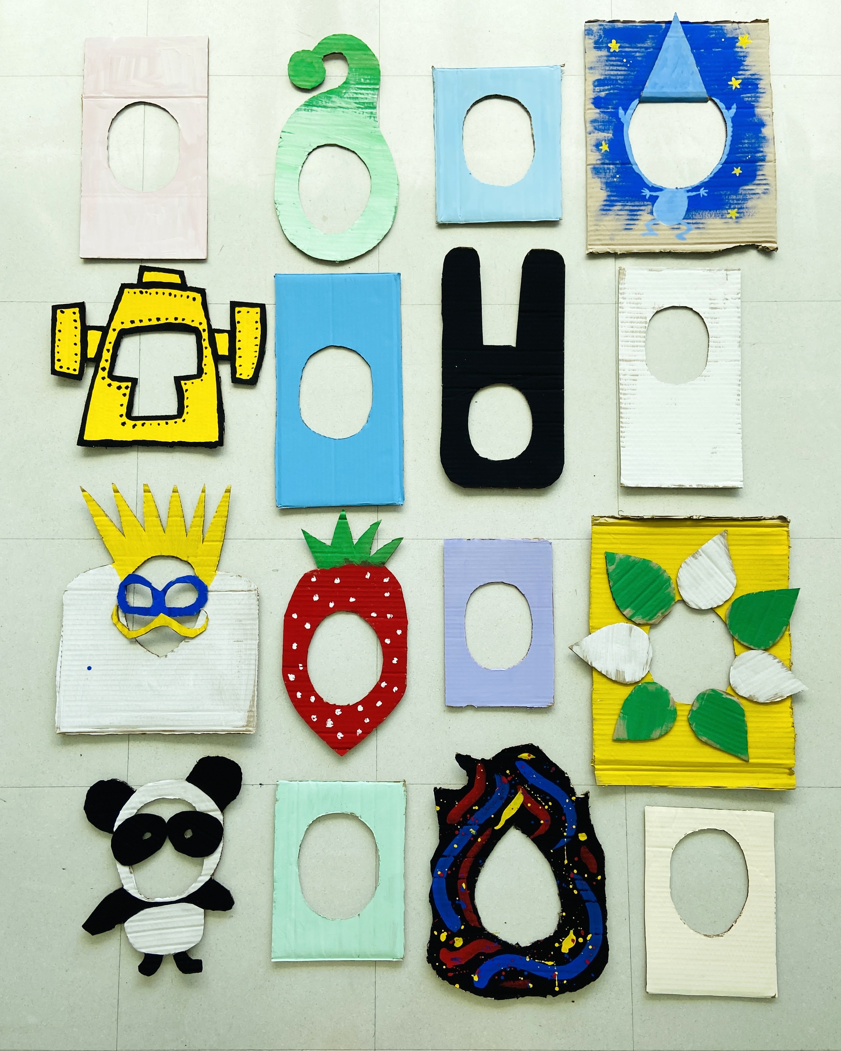 また、ワークショップ室では、当日自由参加で気軽にできるミニワークショップを行います。カラフルなダンボール板を使い、フォトスポットでの撮影にも使えるお面「顔ハメダンボール」をつくることができます(所要時間30分~1時間程度)。